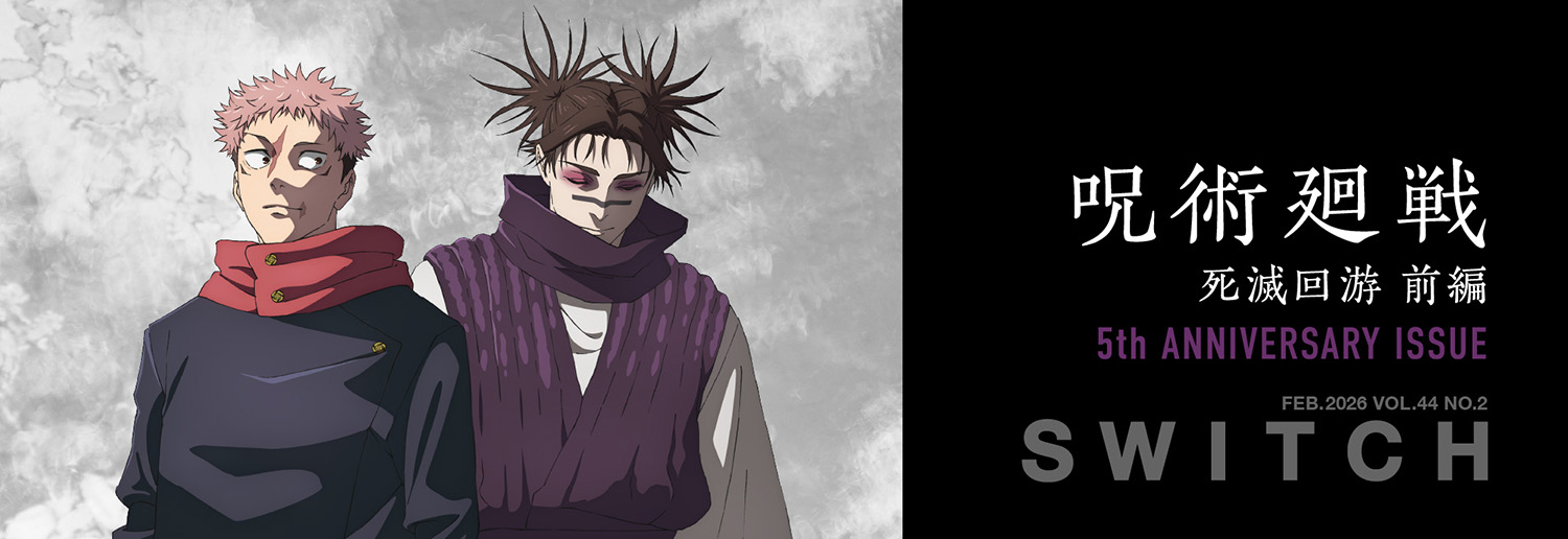 1月20日発売号の雑誌『SWITCH』はTVアニメ『呪術廻戦』の特集です。 5周年を迎えたTVアニメ『呪術廻戦』の道程をキャスト陣の証言とともに振り返りなが ら、第3期「死滅回游」の行方を占い、シリーズの魅力に迫る特集40ページです。